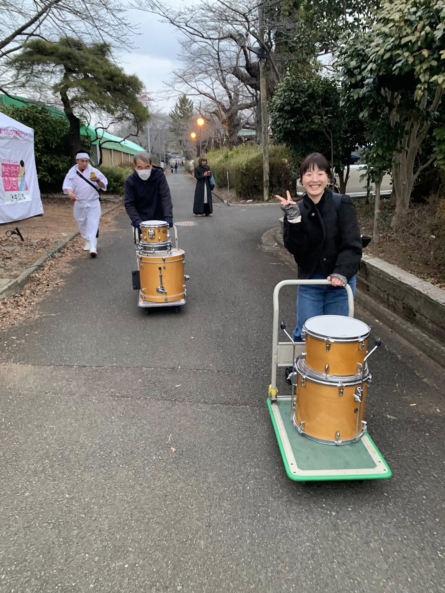さらに機材設営撤収など続々手伝いに集まってくれた一期一会メンバー、牛久市親子枠で応募し仲間入りした親子、手挙げ高校生ドラマーとご両親、ディナーショー常連さん、都内から常磐線に乗って手土産携えワインも奢って頂きました。